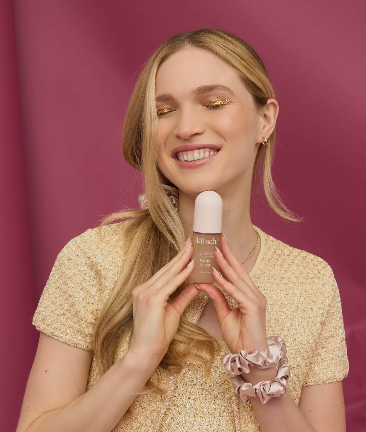 Wrap yourself in cozy holiday vibes with the Kitsch Happy Holiday Hair Set - Warm Sugar. Featuring a luxurious hair & body mist, this scent blends vanilla, sweet sugar, and pink grapefruit for a warm, indulgent finish that lingers just the right amount.